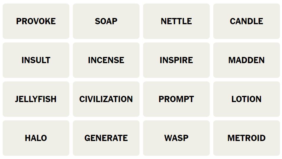 - Hint 4: One group of words is “THINGS THAT MIGHT STING”.