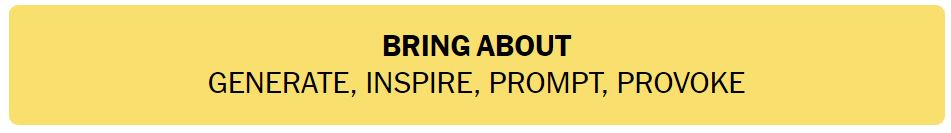 - BRING ABOUT – GENERATE, INSPIRE, PROMPT, PROVOKE
