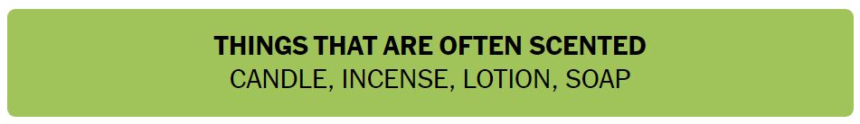- THINGS THAT ARE OFTEN SCENTED – CANDLE, INCENSE, LOTION, SOAP