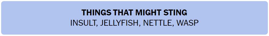 - THINGS THAT MIGHT STING – INSULT, JELLYFISH, NETTLE, WASP