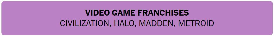 - VIDEO GAME FRANCHISES – CIVILIZATION, HALO, MADDEN, METROID