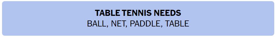 • TABLE TENNIS NEEDS – BALL, NET, PADDLE, TABLE