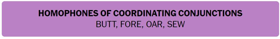 • HOMOPHONES OF COORDINATING CONJUNCTIONS – BUTT, FORE, OAR, SEW
