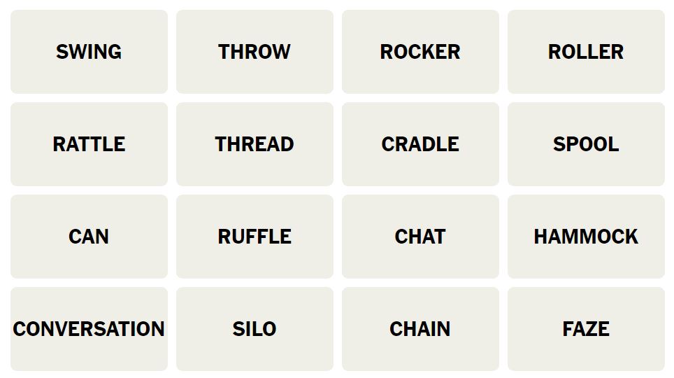 - Hint 2: CRADLE and HAMMOCK are in the same group.