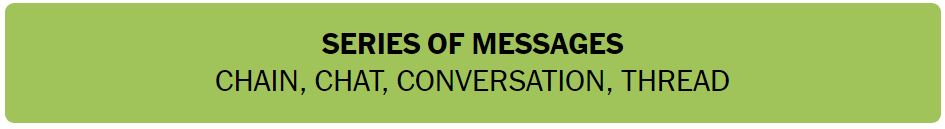 - SERIES OF MESSAGES – CHAIN, CHAT, CONVERSATION, THREAD