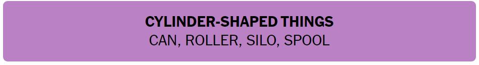 - CYLINDER-SHAPED THINGS – CAN, ROLLER, SILO, SPOOL