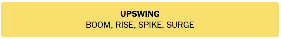 - UPSWING – BOOM, RISE, SPIKE, SURGE