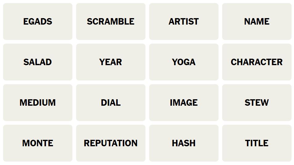 There are sixteen words for the Connection puzzles, which are: