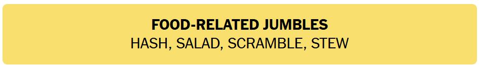 - FOOD-RELATED JUMBLES – HASH, SALAD, SCRAMBLE, STEW
