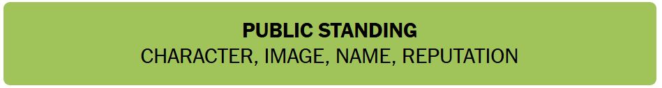 - PUBLIC STANDING – CHARACTER, IMAGE, NAME, REPUTATION