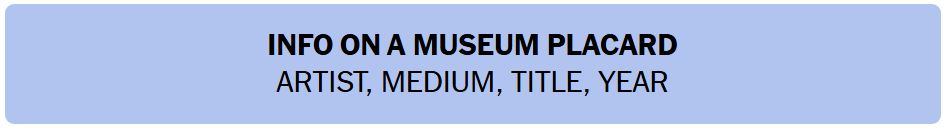 - INFO ON A MUSEUM PLACARD – ARTIST, MEDIUM, TITLE, YEAR