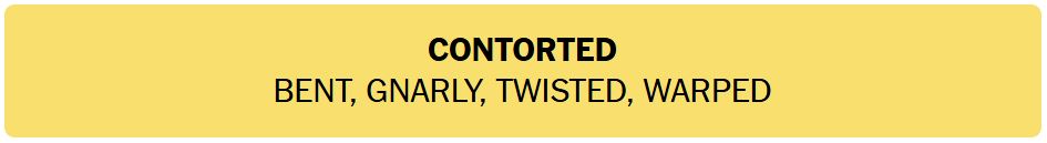 - CONTORTED – BENT, GNARLY, TWISTED, WARPED