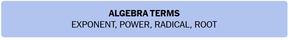- ALGEBRA TERMS – EXPONENT, POWER, RADICAL, ROOT