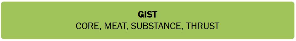 • GIST – CORE, MEAT, SUBSTANCE, THRUST