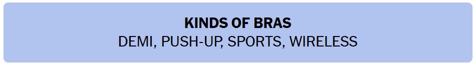 • KINDS OF BRAS – DEMI, PUSH-UP, SPORTS, WIRELESS