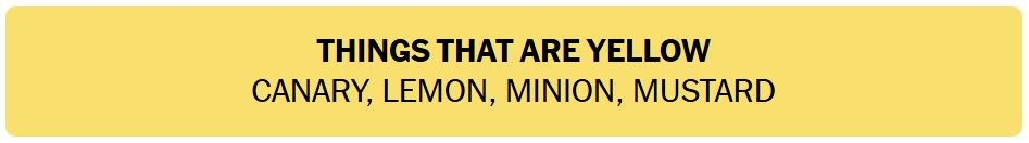 - THINGS THAT ARE YELLOW – CANARY, LEMON, MINION, MUSTARD