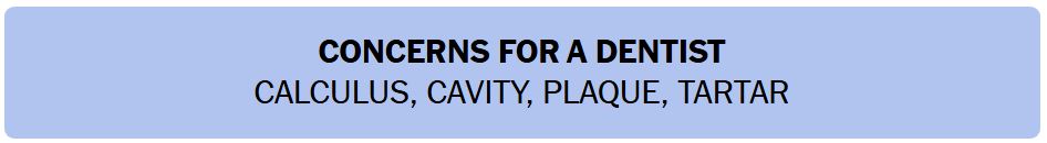 - CONCERNS FOR A DENTIST – CALCULUS, CAVITY, PLAQUE, TARTAR