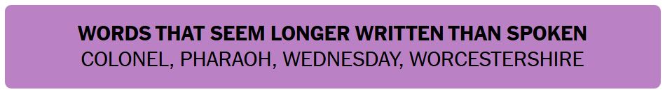 - Hint 4: One group of words is “WORDS THAT SEEM LONGER WRITTEN THAN SPOKEN“.