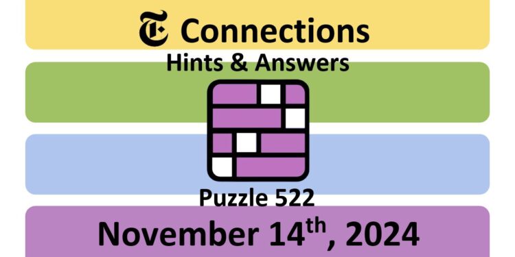 Here are the answers for the New York Times (NYT) Connections puzzle #522 today, released on November 14th, 2024, and some hints to help you solve them.