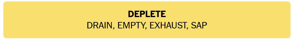 - DEPLETE – DRAIN, EMPTY, EXHAUST, SAP