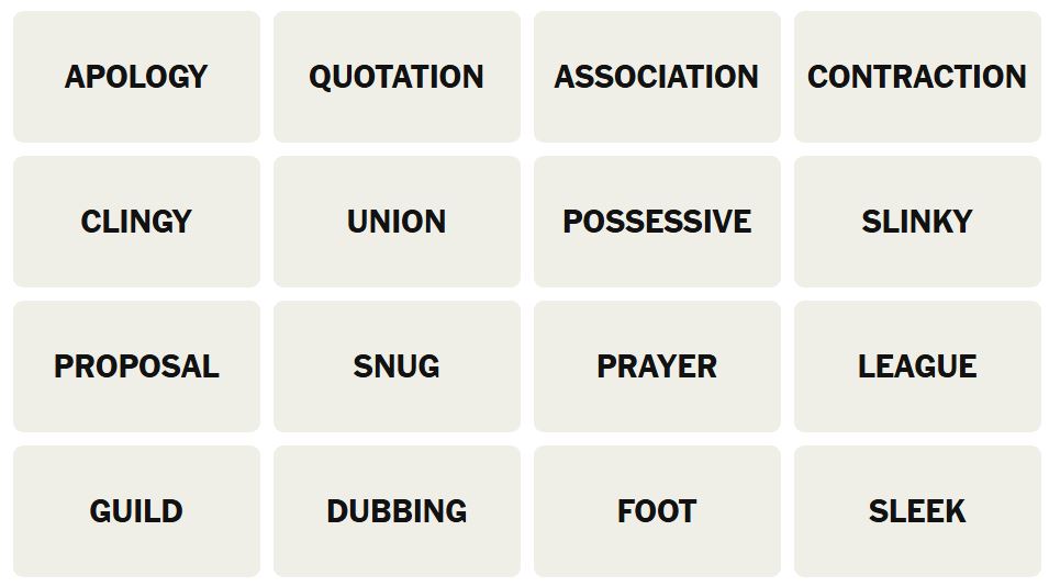 - Hint 2: APOLOGY and PROPOSAL are in the same group.