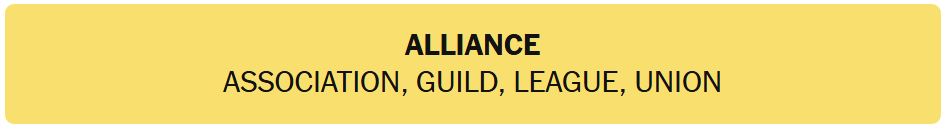 - ALLIANCE – ASSOCIATION, GUILD, LEAGUE, UNION