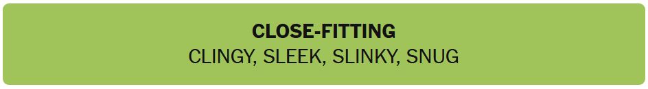 - CLOSE-FITTING – CLINGY, SLEEK, SLINKY, SNUG