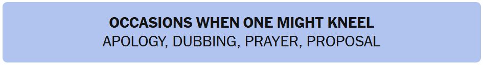 - OCCASIONS WHEN ONE MIGHT KNEEL – APOLOGY, DUBBING, PRAYER, PROPOSAL