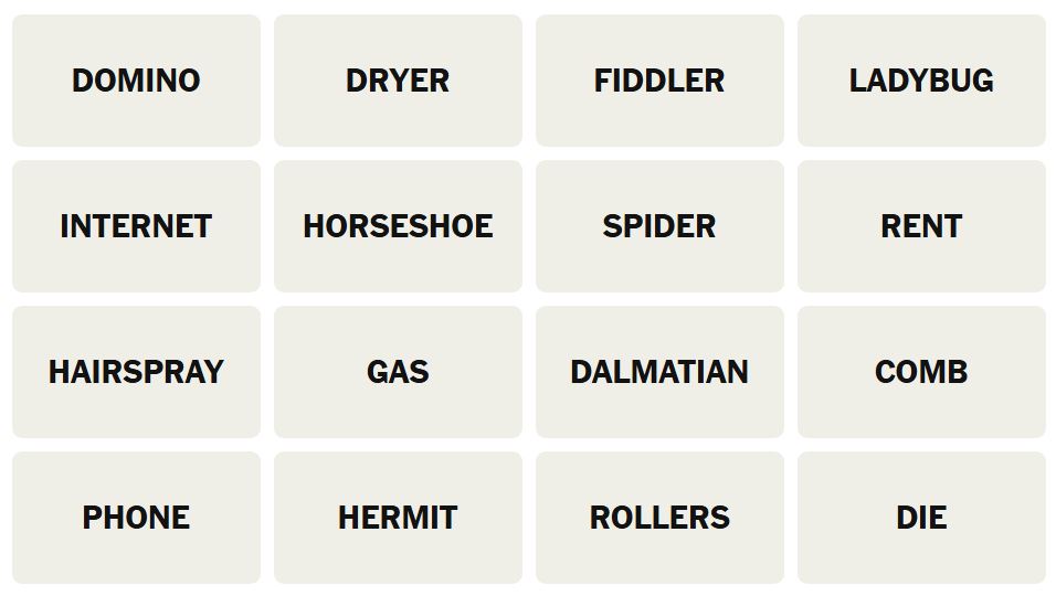 - Hint 2: ROLLERS and DRYER are in the same group.