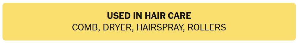 - USED IN HAIR CARE – COMB, DRYER, HAIRSPRAY, ROLLERS