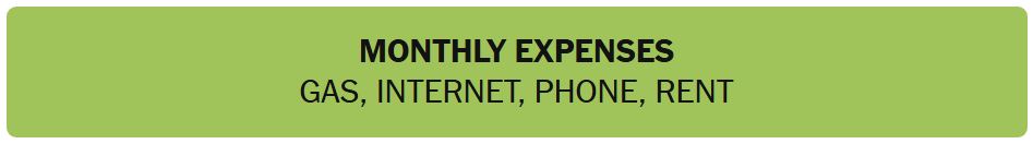 - MONTHLY EXPENSES – GAS, INTERNET, PHONE, RENT