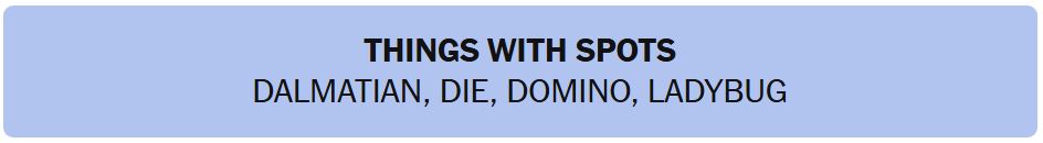 - Hint 1: One of the groups is “THINGS WITH SPOTS”.