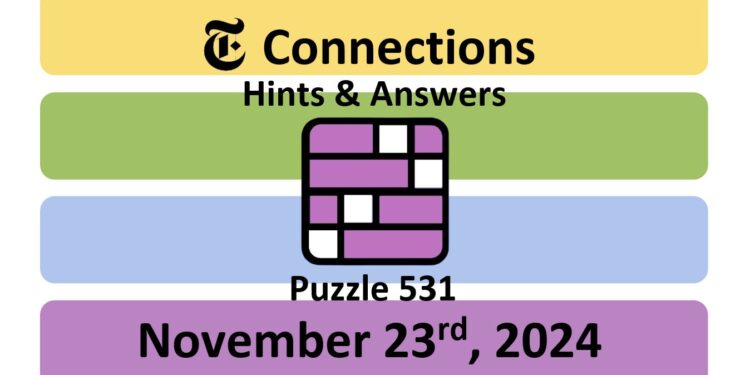 Here are the answers for the New York Times (NYT) Connections puzzle #531 today, released on November 23rd, 2024, and some hints to help you solve them.