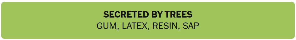 • SECRETED BY TREES – GUM, LATEX, RESIN, SAP