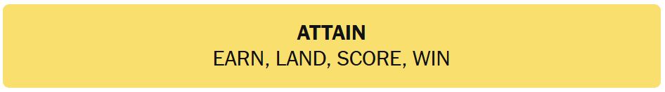 - ATTAIN – EARN, LAND, SCORE, WIN