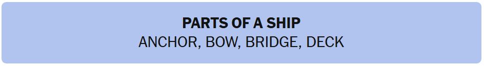 - PARTS OF A SHIP – ANCHOR, BOW, BRIDGE, DECK
