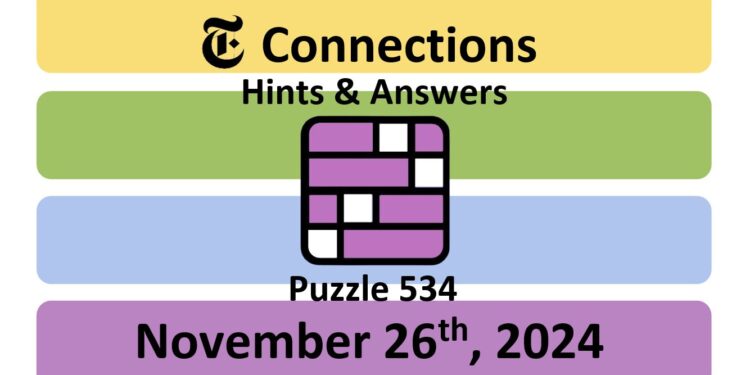 Here are the answers for the New York Times (NYT) Connections puzzle #534 today, released on November 26th, 2024, and some hints to help you solve them.