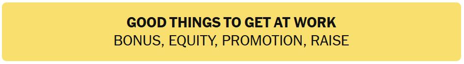 - GOOD THINGS TO GET AT WORK – BONUS, EQUITY, PROMOTION, RAISE