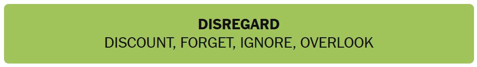 - DISREGARD – DISCOUNT, FORGET, IGNORE, OVERLOOK