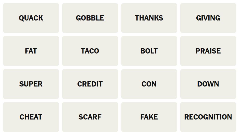 Here are the answers for the New York Times (NYT) Connections puzzle #536 today, released on November 28th, 2024, and some hints to help you solve them.