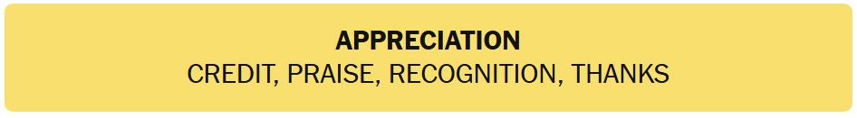 - APPRECIATION – CREDIT, PRAISE, RECOGNITION, THANKS