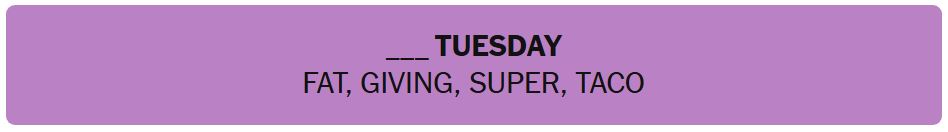 - Hint 4: One group of words comes before the word “TUESDAY”.