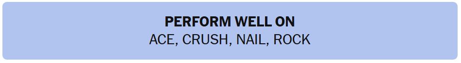 - PERFORM WELL ON – ACE, CRUSH, NAIL, ROCK