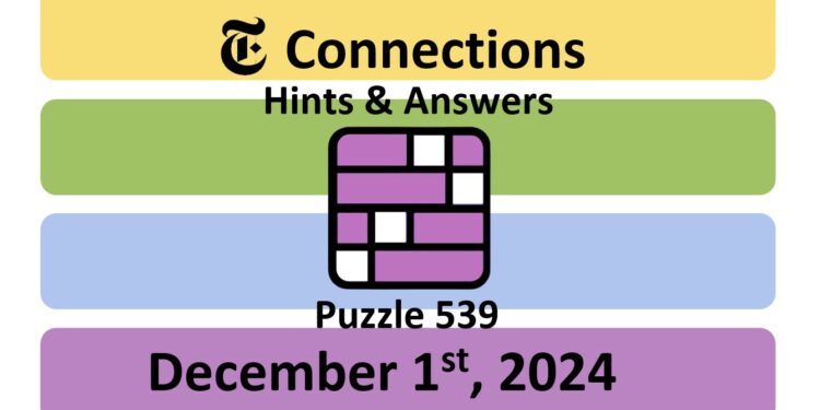 Here are the answers for the New York Times (NYT) Connections puzzle #539 today, released on December 1st, 2024, and some hints to help you solve them.