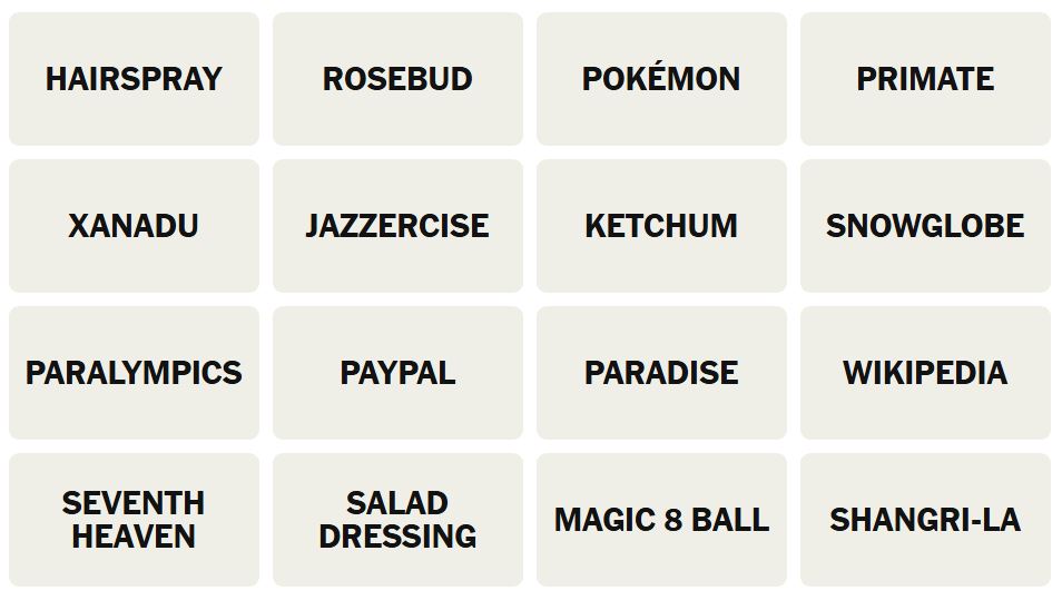 There are sixteen words for the Connection puzzles, which are: