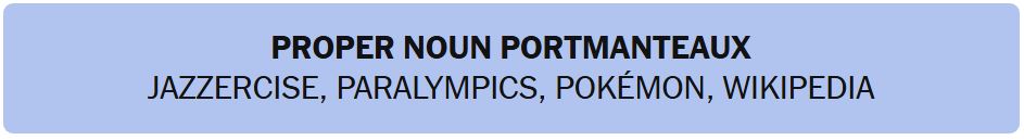 - PROPER NOUN PORTMANTEAUX – JAZZERCISE, PARALYMPICS, POKEMON, WIKIPEDIA