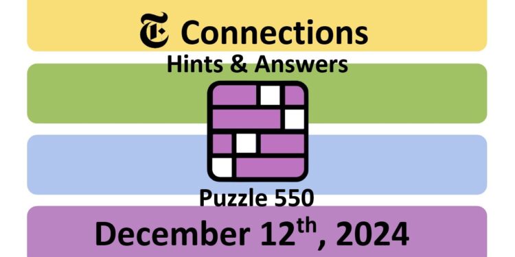 Here are the answers for the New York Times (NYT) Connections puzzle #550 today, released on December 12th, 2024, and some hints to help you solve them.