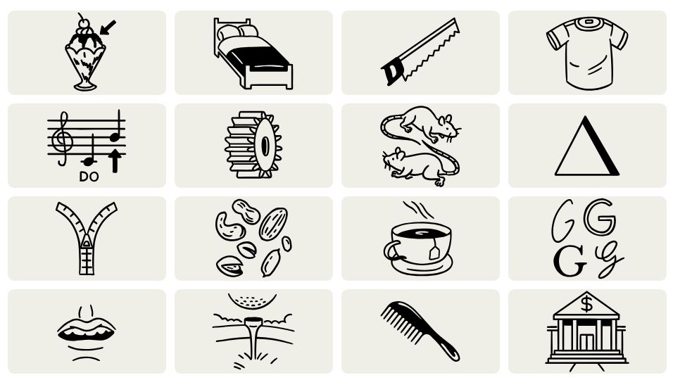 There are sixteen images for the Connection puzzles, which are: