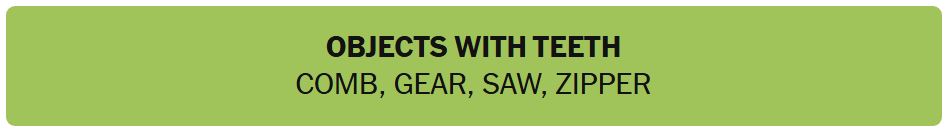 - OBJECTS WITH TEETH – COMB, GEAR, SAW, ZIPPER