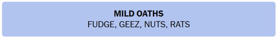 - MILD OATHS – FUDGE, GEEZ, NUTS, RATS